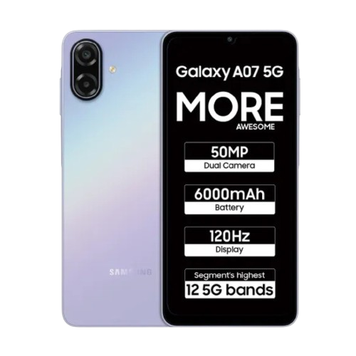 The Samsung Galaxy A07 5G (expected early 2026) is an budget-friendly smartphone featuring a 6.7-inch 120Hz HD+ display, a 6,000mAh battery with 25W fast charging, and a 50MP main camera. It is powered by a MediaTek Dimensity 6300 chipset with up to 8GB RAM, and runs on Android 16 with 6 years of promised security updates.
